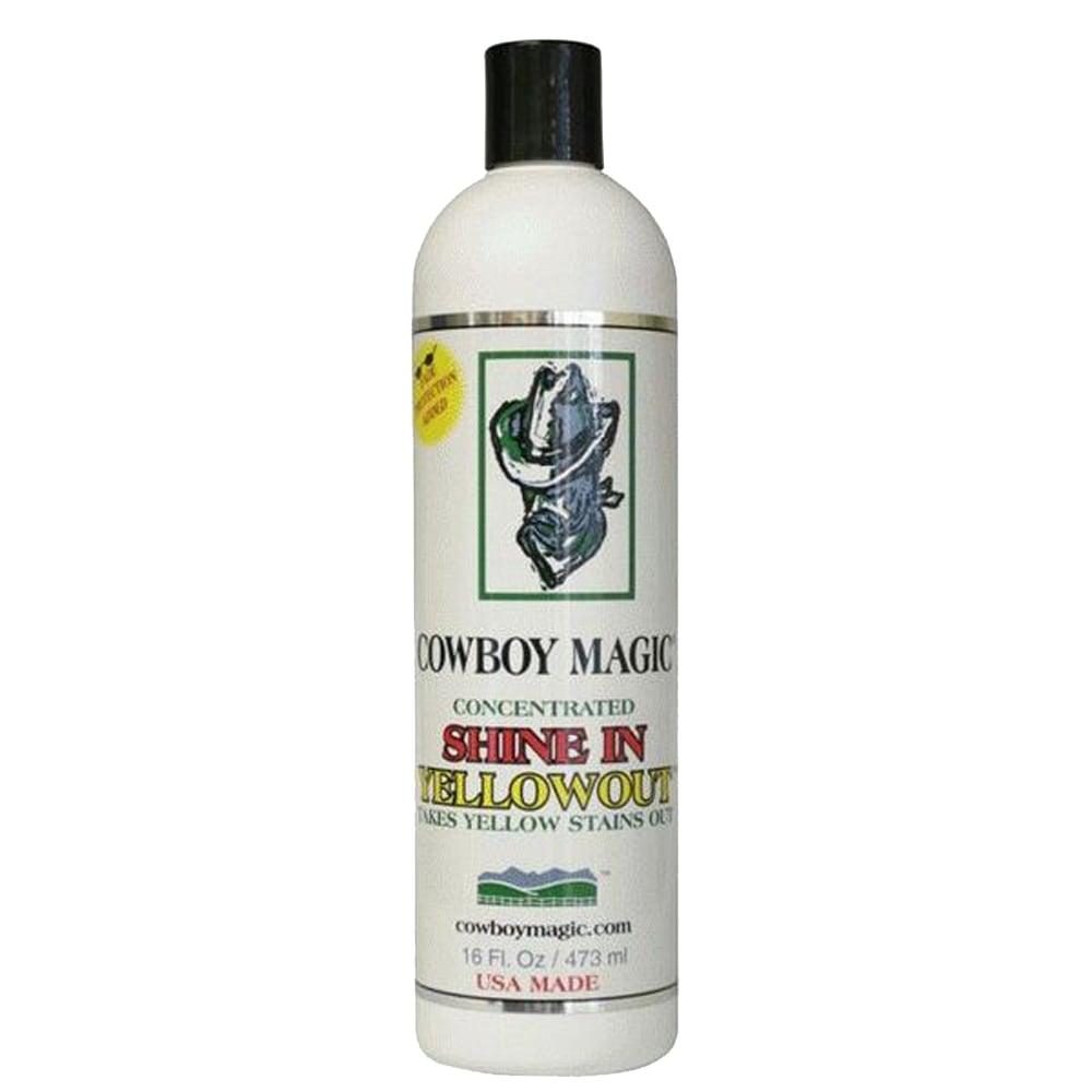 COWBOY MAGIC® SHINE IN YELLOWOUT™ nøytraliserer gule flekker og virker fremhevende for alle type hårfarger: svart, hvitt, kastanje, rødbrunt, brunskimlet, palomino eller pels.